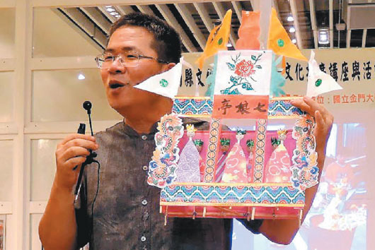 金門民俗專家林金榮經常以「七娘亭」為題,到社區開講,講解這項逐漸式微的傳統技藝。