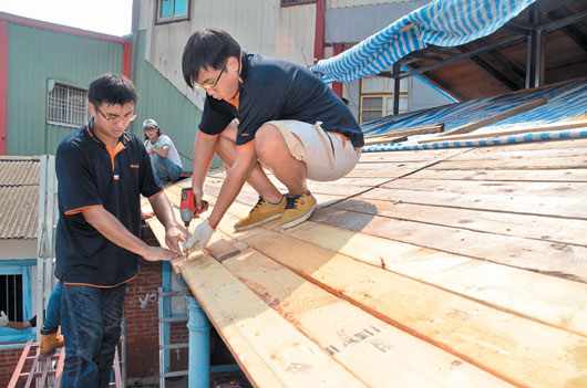 夏宏欣說,老房子多半不是漏水,就是屋頂毀損,有許多住戶以快速方式裝設鐵皮,缺乏美感,或者乾脆拆除重建,讓老房子連根消失。「難道沒有更適合的工法嗎?」他與建築系所學長研商,利用二手木棧板回收再利用,改採防水設施及木頭瓦片,在仕安實驗性地從事老屋改造,預計今年10月就可完工。