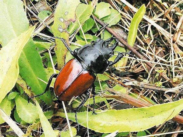 紅圓翅鍬形蟲 天外天復育公園,園區內有台灣藍鵲、大冠鷲、面天樹蛙、紅圓翅鍬形蟲(圖)等。 圖/王執孝、沈錦豐提供