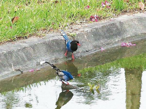 目前正值台灣藍鵲的繁殖季節,復育公園內常可見其蹤跡,樹上也有孵化幼鳥的巢窩。王執孝說,公園內約有30至40隻台灣藍鵲,工作人員下班後,常可看到牠們直接跳上欄杆,民眾可近距離欣賞到牠們的美麗身影。