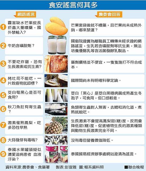 另外,衛福部食藥署也已成立「食藥闢謠專區」,有問題的民眾可透過部長或署長信箱提問,食藥署也會定期搜尋網路論壇、臉書、line等,只要發覺不實網路謠言,就會找專家回應。