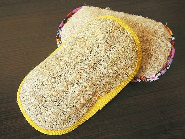 絲瓜絡滾花邊 做成澡巾拖鞋…