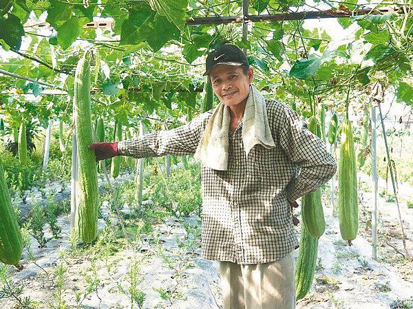 在吳永道細心栽培下,每一條絲瓜都超過60公分,筆直的垂吊在棚架下,吳永道天天到絲瓜園裡巡視。吳永道說,絲瓜最怕蜜蜂,只要被叮咬,絲瓜就會變形,整條絲瓜就要淘汰,也做不成加工品。