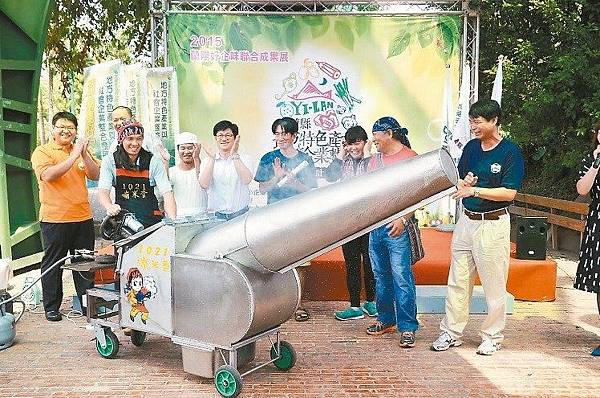 蘭陽好「企」味年度成果展昨天舉行,砲台式爆米香為活動揭開序幕。 記者林縉明/攝影