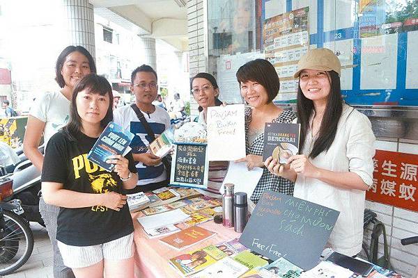 台南社大昨天舉辦「行動書桌」活動,免費提供東南亞國家的書籍,讓移工借回家閱讀。 記者鄭惠仁/攝影