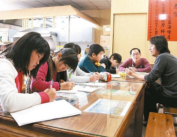 宅港國小學生至北門實地訪問虱目魚攤販黃國良,架設網頁,贏得網界博覽會台灣金獎及國際白金獎。 圖/周俊霖提供