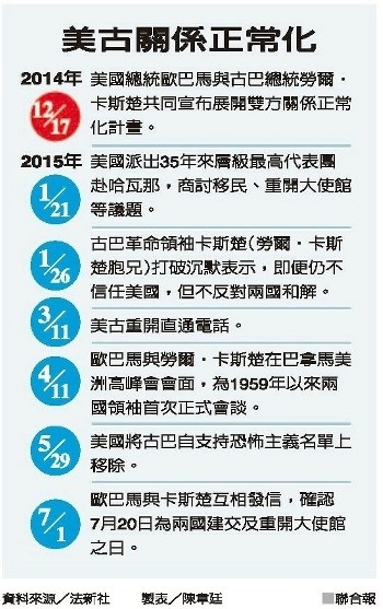 去年十二月十七日,美國總統歐巴馬和古巴總統勞爾.卡斯楚同意重修舊好,逐步走向兩國關係正常化。