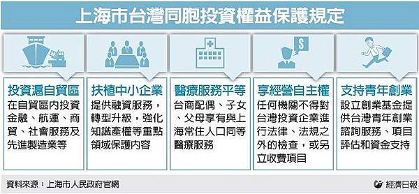 上海市人大近日審議「上海市台灣同胞投資權益保護規定(草案)」,在子女就學、就醫和社會保障等民生領域,擬賦予台灣民眾與上海居民同等待遇,受到當地台商關注。