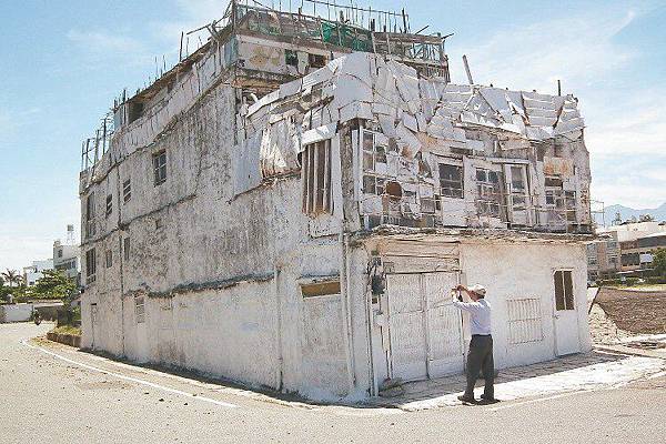 海濱公園新景點「補丁屋」,外傳出售後,昨天吸引不少民眾和遊客前來拍照留念。 記者尤聰光/攝影