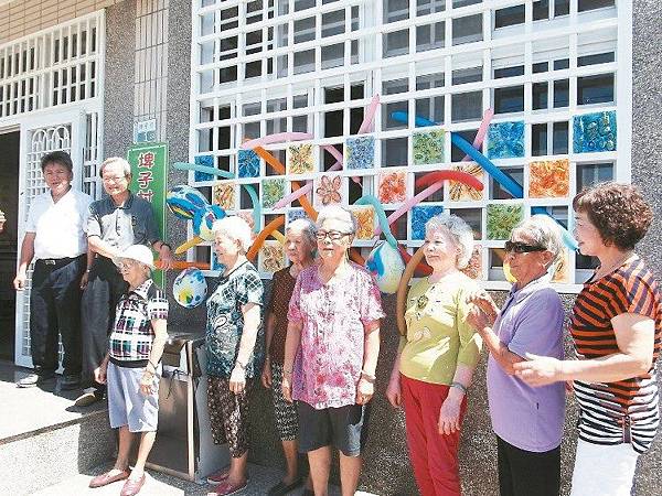 埤子村阿嬤們(圖),與藝術家一起完成小型浮雕,裝飾在活動中心外窗。 記者謝恩得/攝影