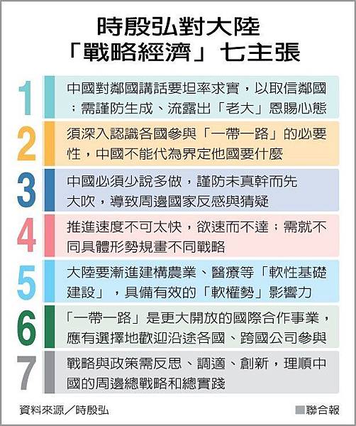 中國人民大學國際關係學院教授時殷弘昨天指出,大陸推出的「一帶一路」政策僅有中國大熱,「中國最好關起門來自己講」,戰略上「飯要一口一口地吃」;我國防部前副部長林中斌認為,大陸剛成立的亞投行則是中、美影響力的「黃金交叉」。