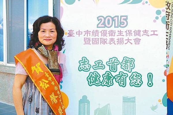 她決定加入醫療志工行列,幫助他人,10年來在童綜合、台中榮總與沙鹿衛生所當志工,幫忙倒茶水、量血壓,關懷安寧病患,陪伴許多患者走完人生旅程。