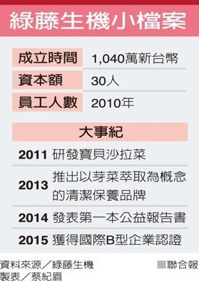 綠藤生機是目前台灣唯四獲得國際組織「B型企業(Benefit Corporation)」認證的公司之一,發了全台灣第一本公益報告書,強調在股東權益之外,企業也應重視勞工、環境、社區、治理、社會公平等多元利益。