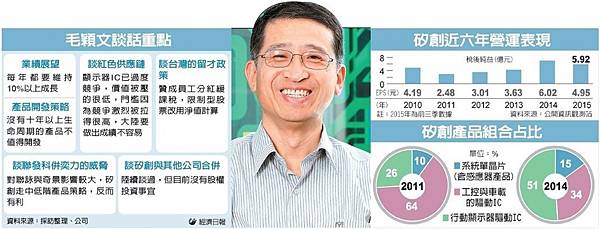 答:矽創向來採產品分散、有計畫地自我緩步成長的策略。這樣的經營模式,雖然無法搭上前一波智慧手機高成長熱潮,讓業績一下子大增,但可以維持穩定的營收與獲利成長,同時,公司的支出也較節省。