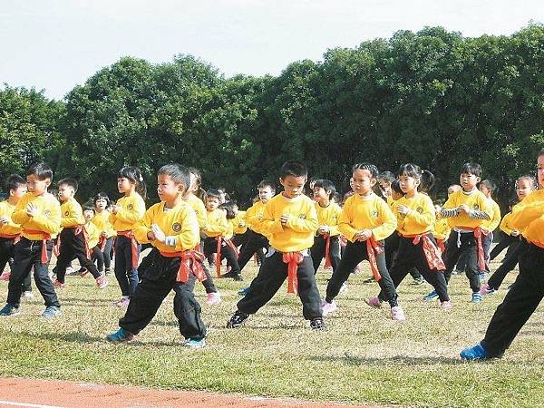 東莞台商子弟學校舉辦15周年校慶暨綜合體育館啟用典禮。近百位萌娃穿功夫裝,揮拳比畫,為校慶拉開序幕。 特派記者蔡敏姿/攝影