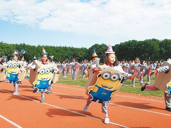 上百名學童在操場上表演創意舞蹈。 特派記者蔡敏姿/攝影