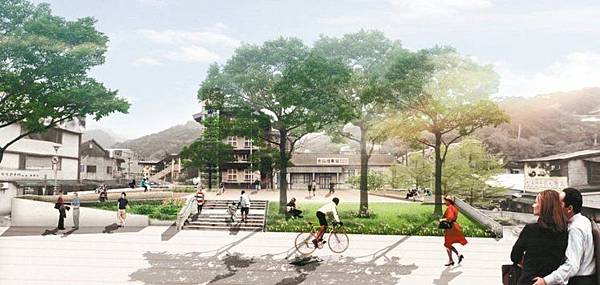 山佳火車站舊站房,將整合車站前廣場、山佳街打造地景公園。圖為模擬圖。 圖/新北市城鄉局提供