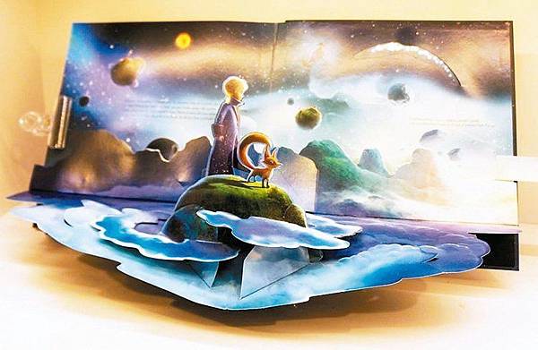新北市青少年圖書館推出童話主題的「愛麗絲帶你閱入魔鏡」法國立體紙雕書展,旋轉木馬式的小王子立體書,讓故事場景及角色,就像從書裡跳出來。 記者王長鼎/攝影