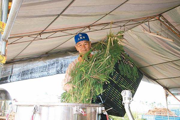 頭社休閒農業區推展栽種澳洲茶樹,入冬後砍下茶樹枝幹運到油廠切成細枝再倒進提闌槽煉製精油。 記者黃宏璣/攝影