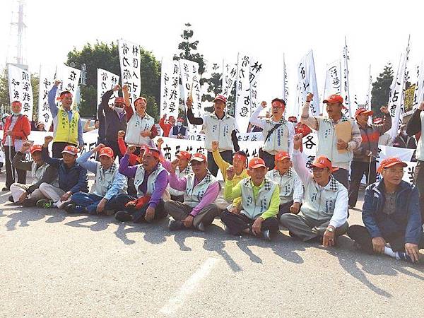 林園上百居民拉起白布條走到中油石化事業部林園廠抗議,里長帶頭呼喊「在地設廠,在地用人」,希望中油增加林園子弟任用人數,回饋林園人長期受石化工業汙染之惡夢。
