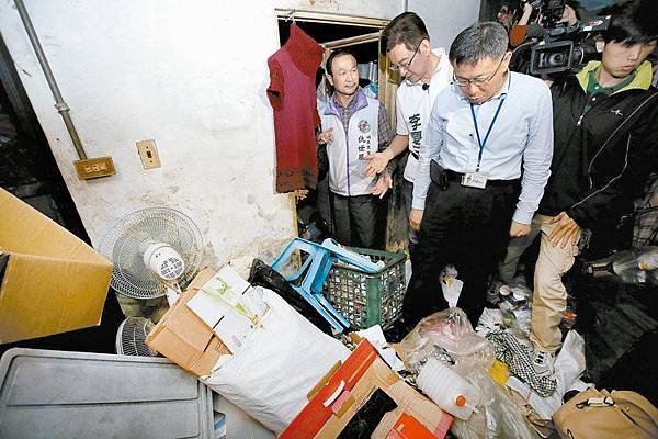 參選本屆立委的市議員李慶元,昨陪同柯文哲赴安康平宅會勘,平宅內部空間狹小,壁癌幾乎隨處可見,環境也雜亂不堪。部分住戶家中地上幾乎被回收物等垃圾占據,甚至有住戶家中因失火凌亂不堪。
