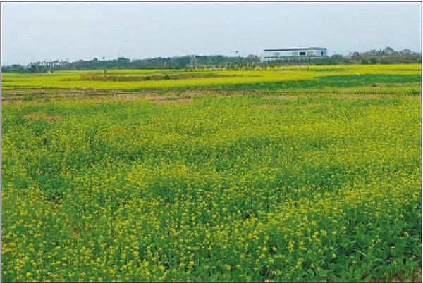 彰化縣芬園鄉彰南路五段沿路稻田最近轉換成黃色花海,農民在入冬前、第二期水稻收割後,在田間撒上油菜籽,春天再將油菜耕入土中作為綠肥,增加土壤養分。最近田裡開出黃色小花,綿延好幾公里,金黃景象相當壯觀。居民指出,車水馬龍的馬路旁,難得看見如畫景致,吸引不少過路客駐足拍照。