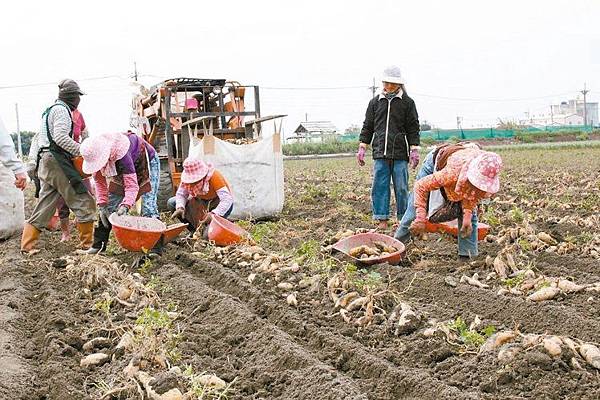 地瓜進入採收期,收成普遍少3成,雲林農民直指導因去年杜鵑颱風和今年霸王級寒流,地瓜葉接連受損,影響光合作用,營養無法回流根部,相較去年A級貨供過於求,今年產量減少,價格是去年2倍。 圖,姜宜菁攝