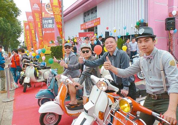 分享偉士牌「VESPA」機車因電影「羅馬假期」成為經典。51歲慶霖建設公司董事長陳慶曄擁有車齡29年的偉士牌機車,日前在中市龍井區台灣大道、都會南街口的「智富一號讚」第二期接待中心前廣場舉辦車展。