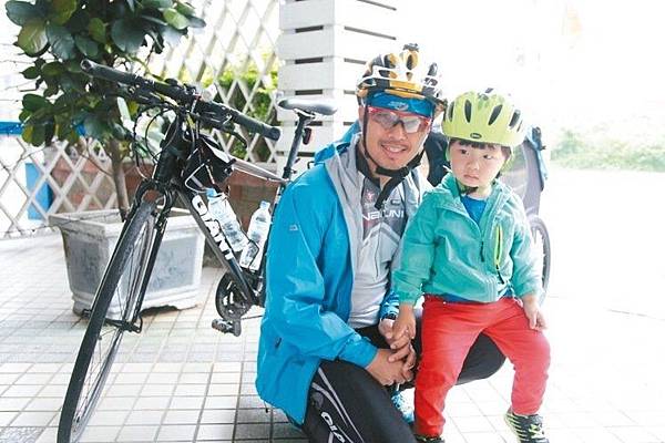 黃鎮昌前天從關渡出發,將去年台灣環島最後一天買的全新單車頭盔,戴在兒子「小溢」頭上,他說,這段冒險故事不是旅行,而是透過父子關係及陪伴,從中找回失去的「家庭」,「讓彼此享受親情關係,學習在一起」。