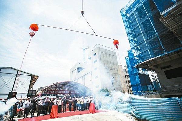 香山行政大樓昨進行上梁,預計明年4月完工。 圖/市府提供