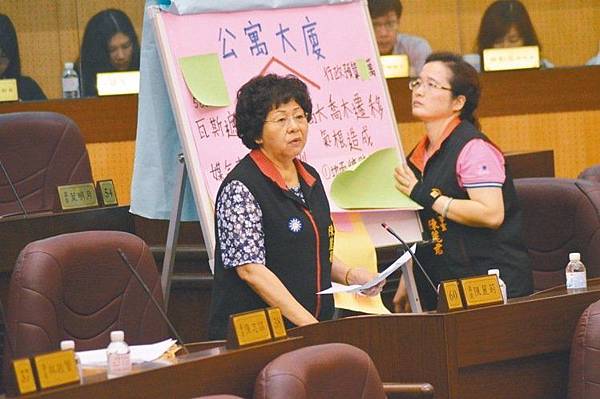 陳麗莉(左)建議高鐵沿線住宅噪音應壓到40分貝以下。 記者施鴻基/攝影