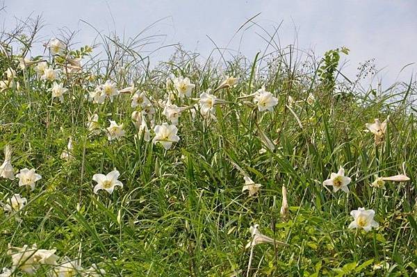 苗栗縣後龍鎮大山里一處濱海邊坡,地方人細心復育百合多年有成,上千朵野百合近日接力綻放,成為後龍大山極富生命力的一隅美景。
