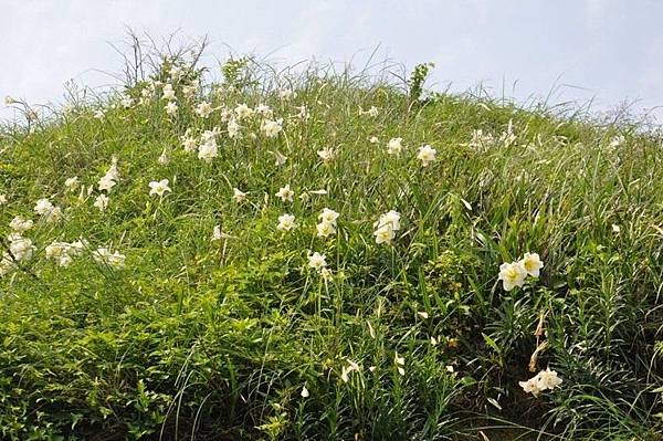 分享後龍鎮大山里一處濱海邊坡,地方人細心復育百合多年有成,上千朵野百合近日接力綻放,成為後龍大山極富生命力的一隅美景。