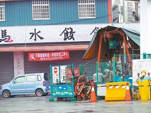 南投縣政府在四大市鎮興建汙水下水道,施工周邊商店生意大受影響。 記者張家樂/攝影