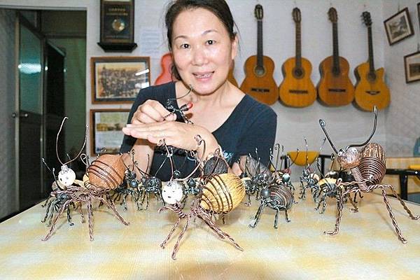 「吃完的水果核也能變身成種子藝術!」台南市肚皮舞老師鄭美蓮因朋友送她一顆紅色「關刀豆」,她加上鋁線纏繞,做出第一隻「種子紅螞蟻」,從此迷上種子創作,除了在樂齡中心教導長輩,還提供作品義賣捐作樂齡中心經費,鄭美蓮說,「不用花錢只要花巧思」就能增添生活樂趣。