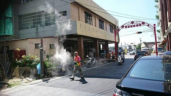 台南市出現今年入夏以來首例登革熱病例, 衛生局人員今天緊急在新營區噴藥。
