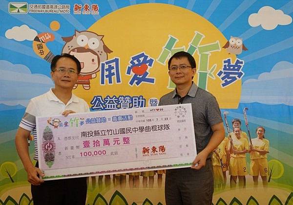 新東陽企業今天贊助10萬元獎勵金給竹中曲棍球隊,協助他們提升裝備。 記者賴香珊/攝影 但球隊面臨的困境並未因獲冠而解除,新東陽團隊今與交通部高公局合作辦理公益贊助暨義賣活動,新東陽副總經理梁誌賢說,先前贊助10萬元當旅費,再捐10萬元,同時義賣2千罐肉醬和鮪魚片,所得全數捐竹中曲棍球隊提升裝備。