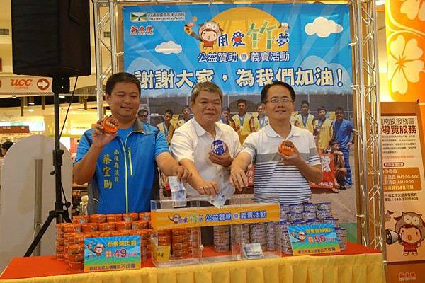 新東陽企業與高公局合作今起在南投服務區義賣罐頭,所得將全數捐給竹中曲棍球隊。 記者賴香珊/攝影