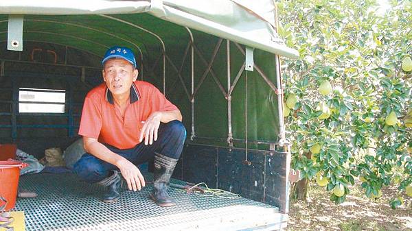雲林縣斗六文旦即將在下周進入採收期,果農憂心宵小覬覦,開著小貨車夜宿果園護柚。 記者陳雅玲/攝影