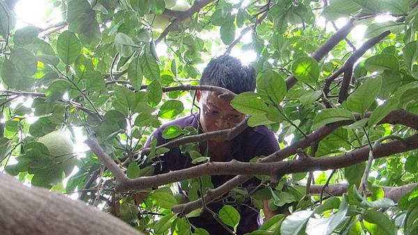 為了採收文旦,年輕一輩還得爬到文旦樹高處危險又辛苦。記者謝進盛/攝影