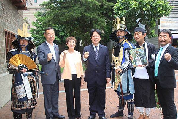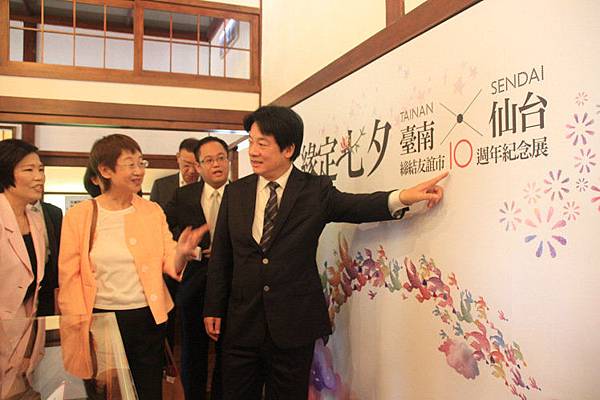 台南市與日本仙台市因同樣有「七夕」習俗結緣,締結友誼市。台南市長賴清德(右四)親自為日本仙台市長奧山惠美子(左三)導覽台南愛情勝景與兩地七夕習俗。
