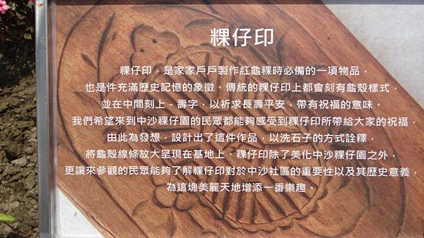 台南市安定區中沙社區「粿仔園」今天舉行啟用儀式,特別的是,由公所4名替代役男親自操刀設計,並結合居民打造當地「粿仔庄」意象,也讓這社區景點更具意義。
