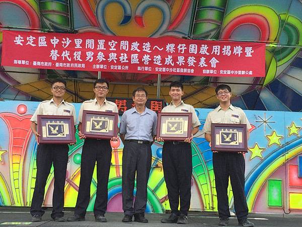 安定區長柳世雄、台南市議員林志展等人也參與啟用儀式,柳世雄並頒發紀念品給鄭榮杰等4名替代役男,感謝為地方付出。