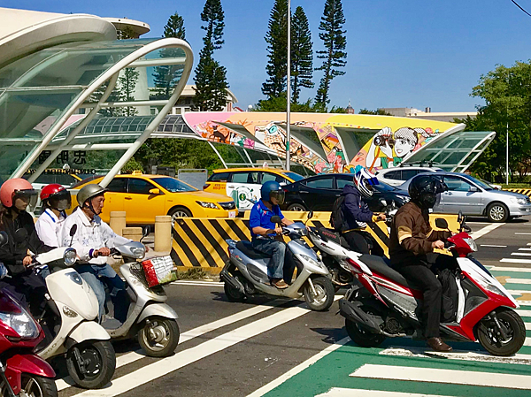 台中市台灣大道4年前改名,老台中人還是習慣稱「中港路」;圖為台灣大道上的彩繪車站...