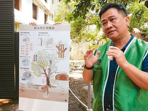 中興大學園藝系副教授劉東啟向民眾說明樹王公健康狀況,盼幫它找回生氣。 記者賴香珊/攝影