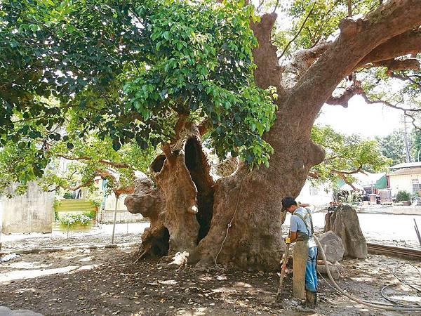 千年茄苳樹快窒息 鄉親動員救根